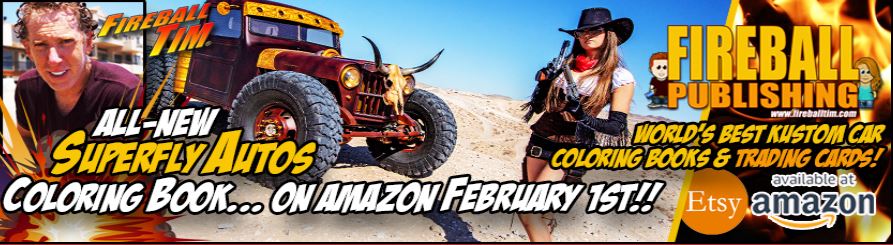 In 10 days, we launch The Official SUPERFLY AUTOS Coloring Book from the UK, then My Classic Car’s DENNIS GAGE Orphans & Oddballs, STATION WAGONS 2, SOCAL PINSTRIPER with World Class Striper Jeff Styles, THE GENTLEMAN RACER with Mike Satterfield, MALAISE MOTORS LINCOLNS, Licensed CARS OF MARILYN MONROE with Limited Runs, The Official SPIKE FERESTEN Coloring Book, DAY OF THE DEAD Hot Rods… and finally SANTA’S GARAGE again with SUPERFLY for the Holidays.