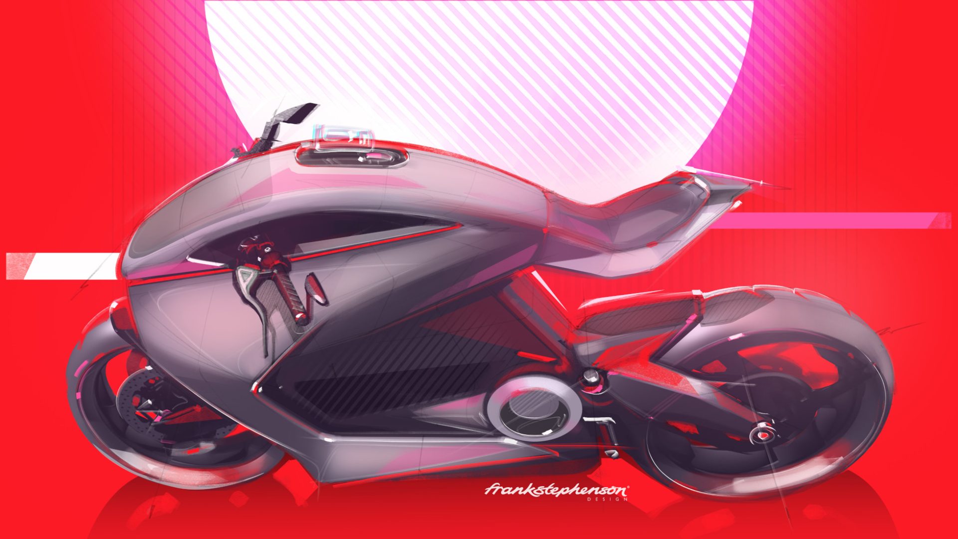 The design is light and agile without going far into the aggressive spectrum. The form has been adapted from the initial concept to an identified platform, retaining the key features which made the concept exceptional: a modular battery monocoque platform, a dynamic windscreen angle adjustment, AR-enabled HUD, and monoblock fairing, to name a few. The light signatures have been designed to be simple, yet distinguishable, in today’s world of monotonous light streaks in the night roads.